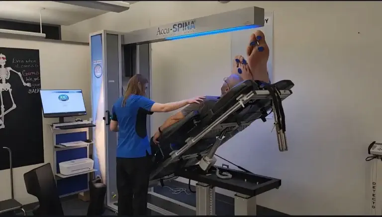 Patients typically spend 30 minutes on the Accuspina system along with appropriate manual and physiotherapy modalities. The duration of the treatment program is 10-12 weeks of active care.