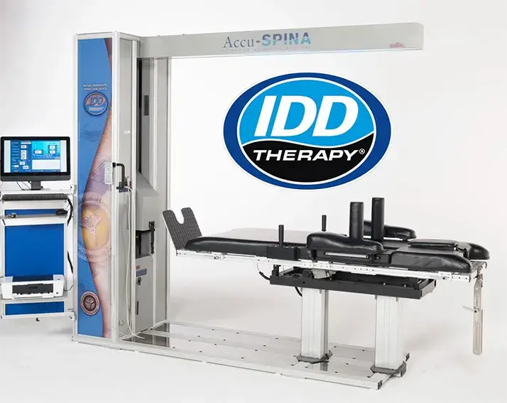 The Accu-SPINA® System is the only therapeutic device approved to deliver IDD Therapy (Intervertebral Differential Dynamics) Disc Treatment. IDD Therapy treatment is a broad range of treatment protocols that mimics many conventional physical-therapy regimens.